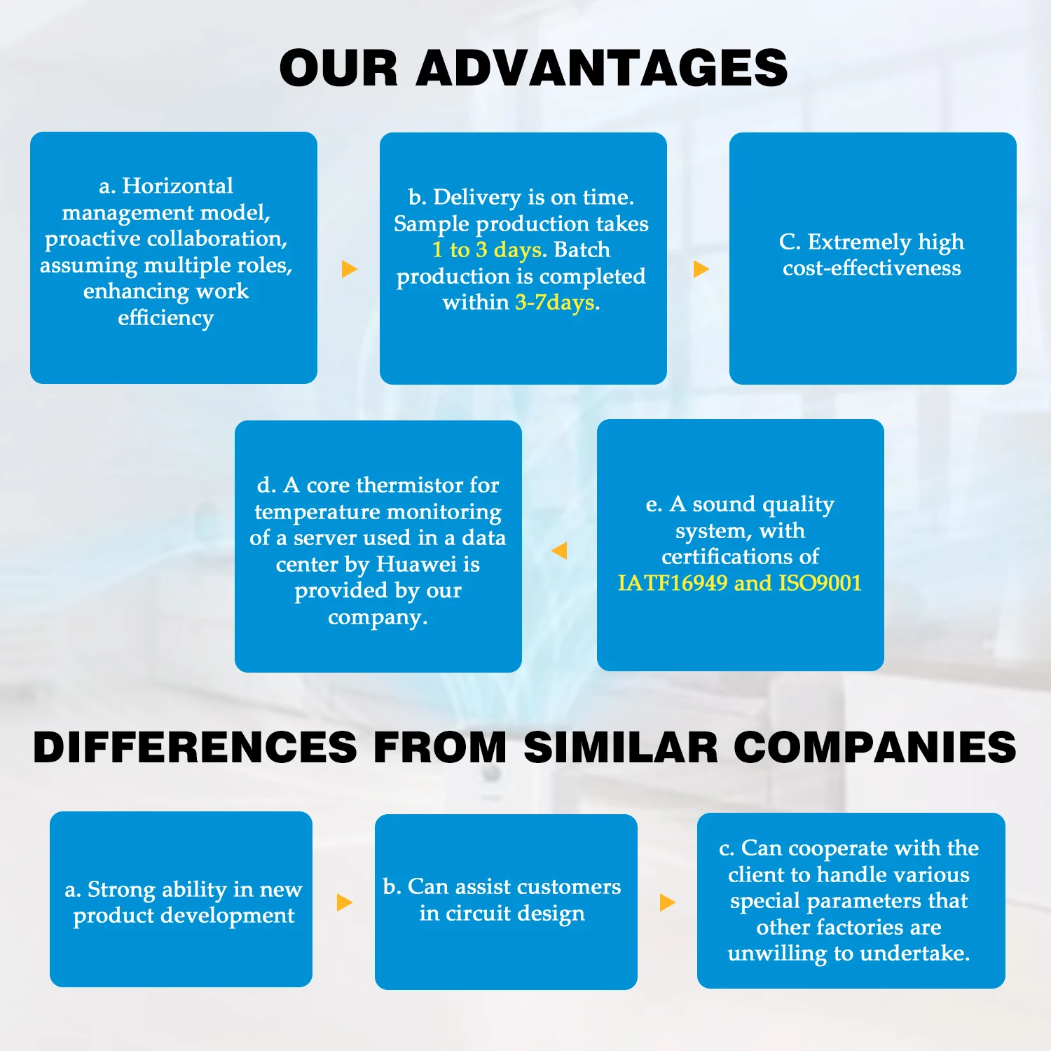 a high-tech enterprise with completed sensitive metamaterials technology Mainly produce various kinds of NTC thermistor, high-precision NTC, temperature sensor, and also can effectively cooperate with customers' request to produce a variety of non-stan